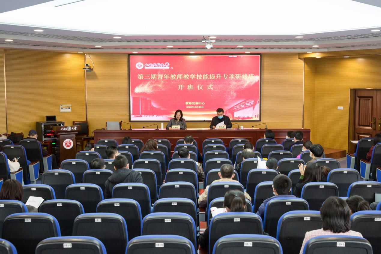 ? 圍繞校黨委《2022年工作要點》,為幫助我校青年教師盡快適應應用型大學的教學能力,推動高水平應用型大學建設不斷邁上新臺階,3月25日下午,我校第三期青年教師教學技能提升專項研修班開班儀式在行知樓0228室舉行。校黨委常委、副校長翟大彤作開班第一講。各學院分管教發工作副院長以及參訓青年教師參加了開班儀式。教師發展中心主任王麗珍主持開班儀式。