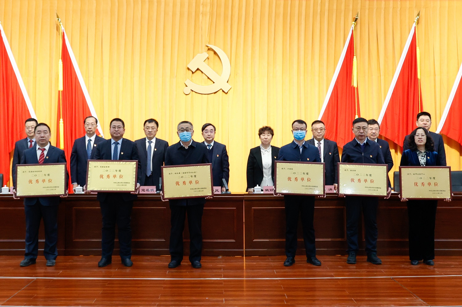 校領導為受表彰的先進集體頒發獎牌。