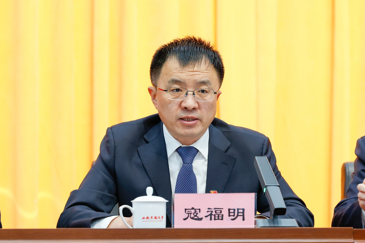 寇福明宣讀學校2022年度考核表彰決定。煤炭工程學院等7個學院獲評優秀學院,計財部等6個部門獲評優秀單位,350名教職工獲評優秀個人。