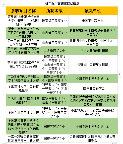 2022年,《創業基礎》被評為山西省一流課程,同時入選教育部在線教育研究中心“拓金計劃”示范課程;還獲得第四屆全國高?;旌鲜浇虒W設計創新大賽三等獎,第八屆西浦全國大學教學創新大賽優秀獎,第二屆“智慧樹”杯全國課程思政設計大賽特等獎,山西省級思政設計大賽二等獎,第二屆全國高校教師創新大賽省賽三等獎?!秳摌I基礎》課程教學改革被人民網、黃河新聞網、大同電視臺等媒體報道21篇次。