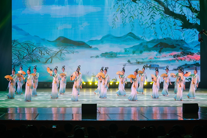 音樂學院舞蹈團帶來的《醉春風》,演繹了女子持折扇游春,陶醉在萬里山河、春色無邊中,在溫暖清淡的江南,一草一木一花一葉都重獲生機。