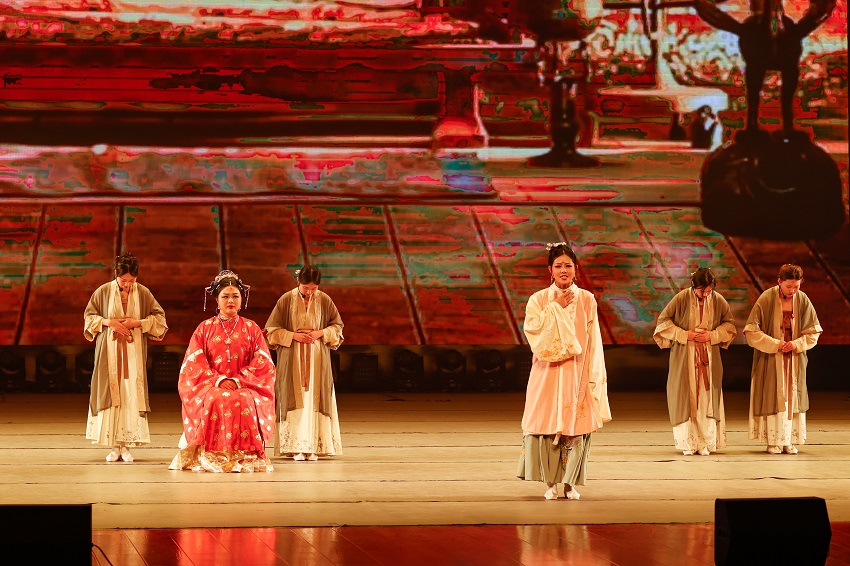 離情悠揚,別意纏綿,嫁路蒼茫,山長水遠;云山凝愁,水波生寒,昭君一去,世無胡漢。文學院帶來的《昭君出塞》將歷史典故演繹得淋漓盡致,引得全場掌聲連連。