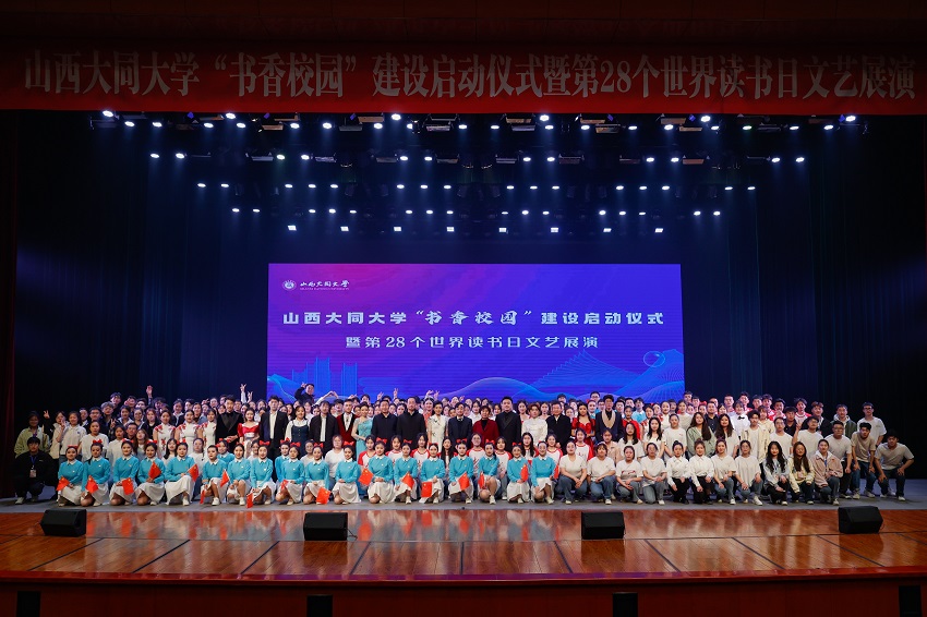 ? 家有讀書子,國有棟梁才。4月23日,山西大同大學“書香校園”建設啟動儀式暨第28個世界讀書日文藝展演在本真樓演播廳舉行。來自全校9個單位的10余個節(jié)目輪番登臺、精彩演繹,1200余名師生歡聚本真樓,共同開啟這場同大文化盛宴。本次活動旨在進一步貫徹落實黨的二十大精神,扎實開展學習貫徹習近平新時代中國特色社會主義思想主題教育,以“書香校園”建設深化主題教育,為奮進新征程、建功新時代注入強大精神力量。校黨委書記趙水民,校黨委副書記、校長姚麗英,校黨委常委、紀委書記、監(jiān)察專員郭繼林,校黨委常委副校長張旻、雷建設等在校校領導出席活動。