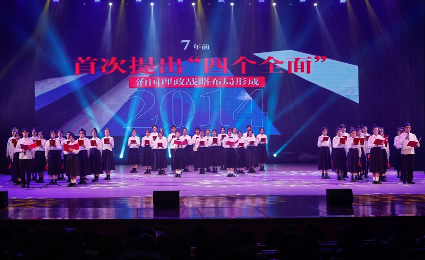 歌曲《媽媽,給我打開一本書》展現了書籍是人類寶貴的精神財富,鼓勵我們與閱讀相伴一生,一起熱愛讀書,從書中吸收營養(yǎng)、豐富知識、完善人格;一曲《水調歌頭》唱盡了古時分隔兩地的親人間只能通過共賞一輪明月來寄托對彼此的思念之情;《與清同向,與廉同行》正與清廉同大建設相互呼應,大合唱《閃耀的理想》更是鼓勵廣大學子與閱讀同行,與書香為伴,在字里行間探索人生的意義,追尋理想的光芒。……一個個厚重而充滿力量的文化展演,激發(fā)了師生對書籍的熱愛,對閱讀的渴望,對文化的憧憬。