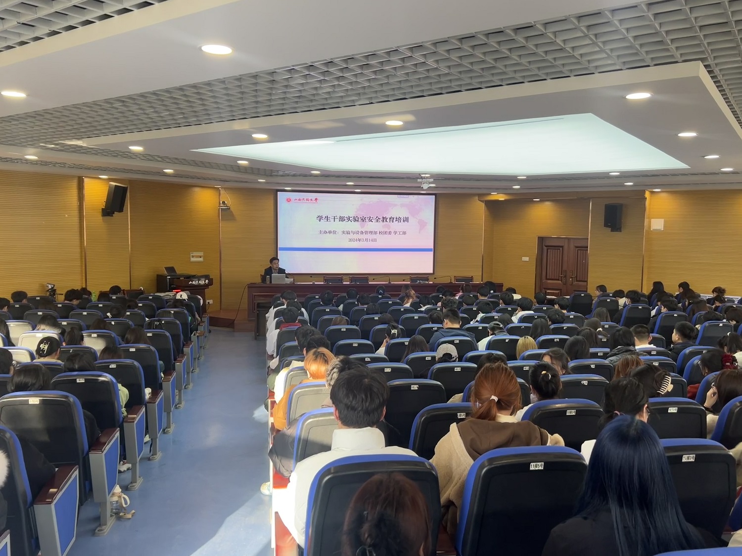 為進一步加強實驗室安全文化建設,提升學生實驗室安全意識,強化安全規章入腦、安全知識入心、安全規范入行,將學校“上好實驗室安全第一課”要求落到實處,3月14日,實驗與設備管理部聯合校團委、學工部在御東校區行知樓0228會議室舉辦了學生干部實驗室安全教育培訓活動。學校實驗室安全督查組組長王官祿作“人人講安全、個個會應急”主題講座,200余名學生干部參加培訓。實驗與設備管理部部長徐青云主持講座。