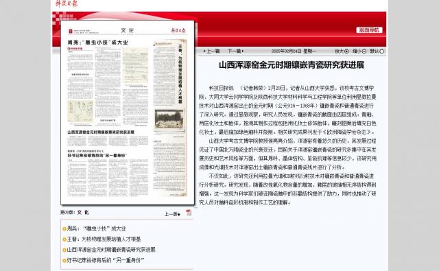 科技日報訊(記者 韓榮)2月20日,記者從山西大學獲悉,該校考古文博學院、大同大學云岡學學院及陜西科技大學材料科學與工程學院等單位利用顯微拉曼技術對山西渾源窯出土的金元時期(公元916—1368年)鑲嵌青瓷和普通青瓷進行了深入研究。通過顯微觀察,研究人員發現,鑲嵌青瓷的截面由四層組成:青釉、兩層化妝土和胎體,推測其制作過程包括用化妝土修飾胎體,雕刻圖案后填充白色化妝土,最后施加綠色釉料并燒制。相關研究成果刊發于《歐洲陶瓷學會雜志》。