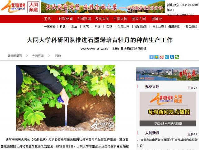 黃河新聞網大同訊(記者胡雁)為積極推進石墨烯培育牡丹種苗與成品苗生產基地,建立石墨烯培育的牡丹輕簡高效栽培示范基地,5月5日至6日,大同大學石墨烯林業應用國家林業和草原局重點實驗室科研團隊在山西省古縣開展石墨烯培育牡丹種苗基地建設的工作。