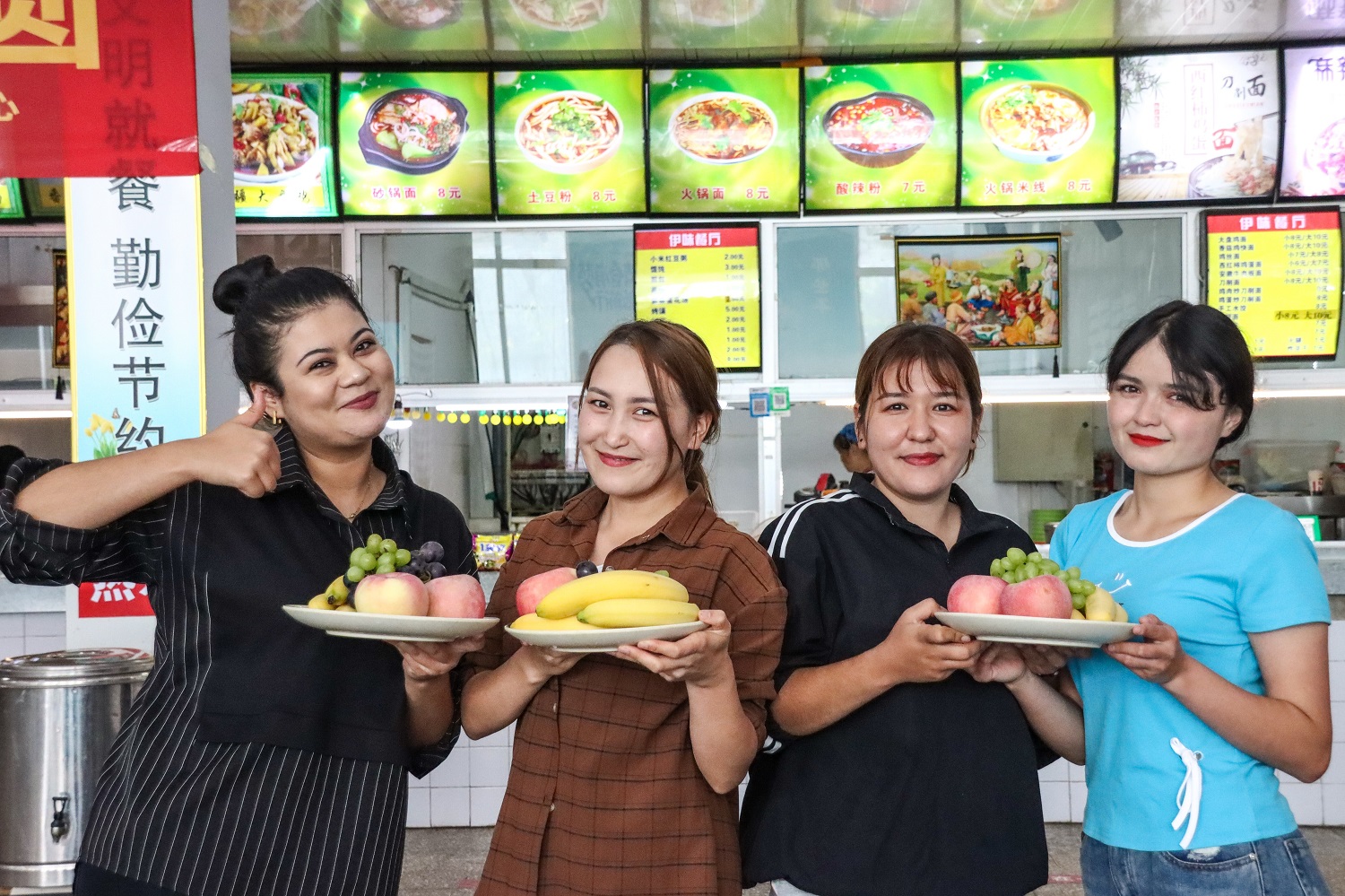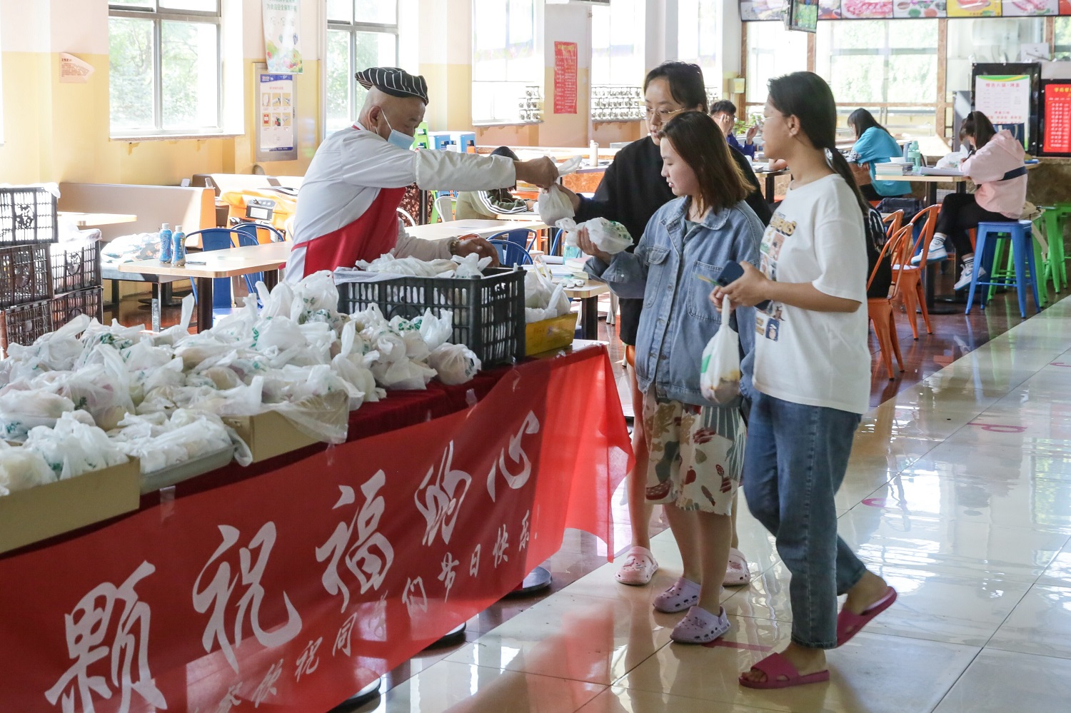 時(shí)近中午,姚麗英等又來到學(xué)苑餐廳。為了讓同學(xué)們盡享節(jié)日氣氛,后勤管理部為同學(xué)們準(zhǔn)備了22000余份中秋禮包。“情濃中秋喜迎國慶”“香甜的月餅連同一顆祝福的心”……大紅的橫幅標(biāo)語傳遞著節(jié)日的快樂,隨處可見的明媚的笑顏感染著現(xiàn)場的每一個(gè)人。在食堂的空曠地帶,師傅們正在把裝有月餅和蘋果的禮包送給每一位前來就餐的同學(xué)。“中秋快樂!”“謝謝,中秋快樂!”一份份小小的禮包,一聲聲溫暖的問候,傳遞著彼此間衷心的祝福。