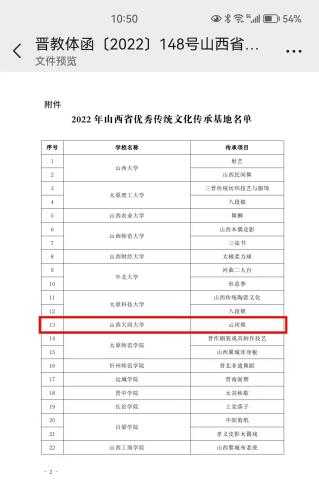 ? 近日,山西省教育廳公布了2022年山西省優秀傳統文化傳承基地名單,我校申報的云岡舞傳承基地成功入選。開展優秀傳統文化傳承基地建設活動是我省深入推進中華優秀傳統文化全方位融入高校美育教育的重要舉措,是省教育廳為貫徹落實《山西省全面加強和改進新時代學校美育工作若干措施》而開展的重要活動。據悉,經各高校自主申報、專家遴選與公示,2022年度全省共認定了 37個傳承基地。自2018年至2020年,全省共批準46個優秀傳統文化傳承基地,我校報送的云岡雕塑藝術傳承基地成功入選2020年度山西省優秀傳統文化傳承基地。