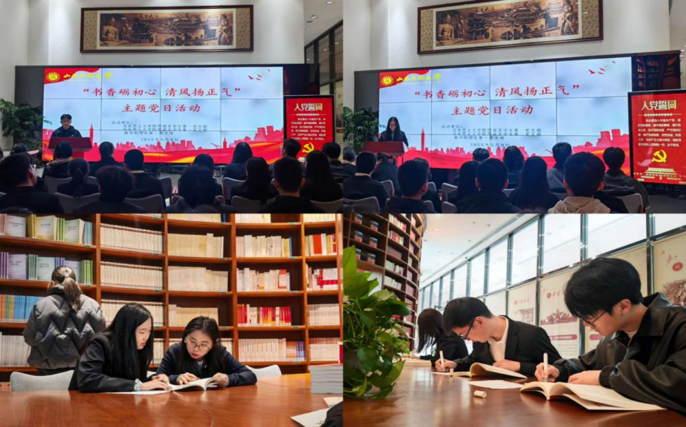 近日,馬克思主義學院思政系學生第一、第二黨支部與商學院學生第一黨支部齊聚大同市圖書館學習書屋,聯合開展“書香礪初心清風揚正氣”主題黨日活動。活動通過紅色誦讀、專題學習、互動實踐等形式,引導青年黨員堅定理想信念,弘揚清正廉潔的優良作風。